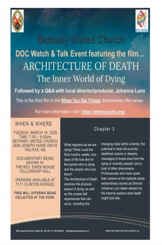We wish to share with the broader community of faith members and neighbours an invitation to attend this upcoming event Bethany United Church is hosting, with Q & A following with the film’s director, Johanna Lunn.