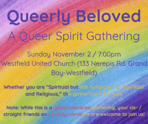Introducing Queerly Beloved – a queer spirit gathering! This is for folx who identify as “spiritual but not religious” or “spiritual AND religious.”